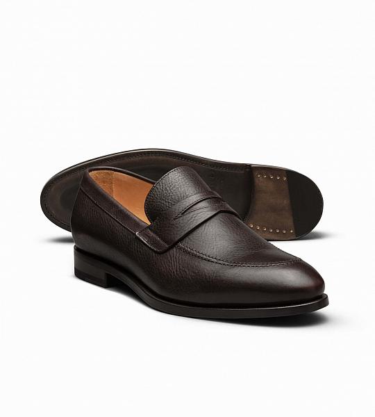 Verleihen Sie Ihrem Look Charakter mit diesen handgefertigten Penny Loafers in Dunkelbraun. Das pflanzlich gegerbte, genarbte Kalbsleder hebt die natürlichen Falten und Adern der Haut hervor. Hier mit Ledersohle und Gummigriff entworfen. Machen Sie diese Schuhe zu Ihren eigenen mit unseren vielen Anpassungsoptionen, aus denen Sie wählen können.