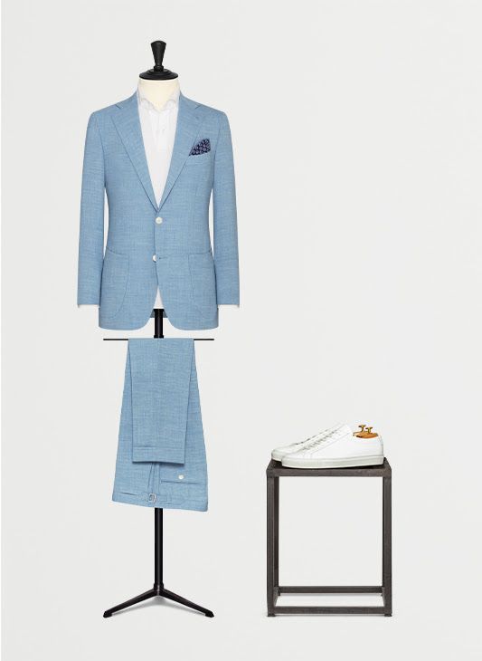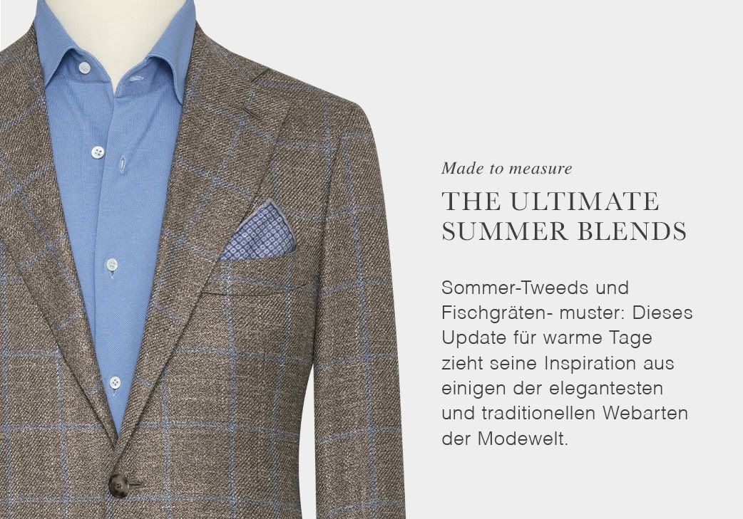 Diese Kollektion beinhaltet Sakkos und Anzüge aus weichen Mischgeweben mit Naturfasern wie Wolle, Seide und/oder Leinen. Manche von ihnen wurden für einen zusätzlichen Struktureffekt verstärkt. Bei einigen sorgt eine doppelte Zwirnung für einen leistungsfähigeren Stoff. Und für die Liebhaber der Bewegungsfreiheit haben wir einen Anzug aus Stretchstoff mit dezenten Mélange-Details im Programm. Jeder Stoff ist perfekt für sommerliche und bequeme Kleidungsstücke geeignet. Die Farbpalette umfasst erdige Farbtöne wie Blau, Grün und Braun