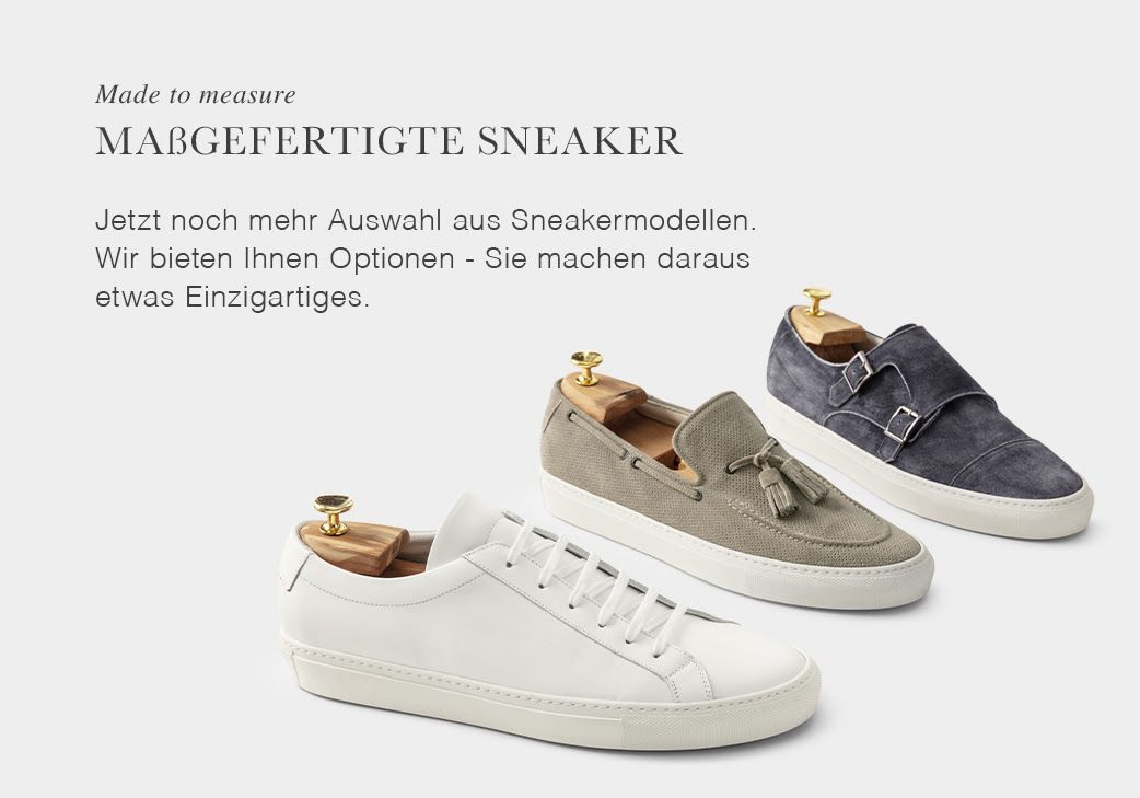 I guess there's no one who doesn't love sneakers. Especially when they are perfectly tailored to your own taste. In our sneaker collection Made in Italy there is everything your heart desires: low tops, slip-ons, loafers, double monks and much more. Design your own personal copy in textured or smooth leather or suede, with or without monogram. Add matching (or contrasting) soles, tongues, back caps and laces. Matching options for the belt are also possible.