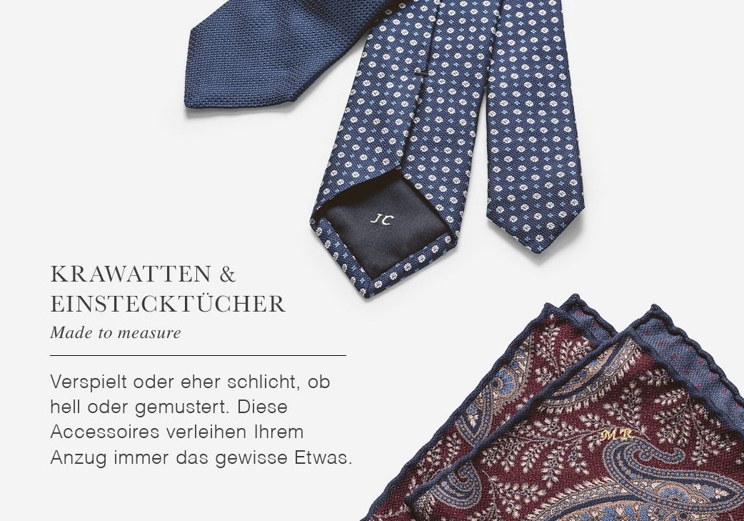 Mit einer Krawatte oder einem Einstecktuch verleiht Mann seinem Outfit eine gehörige Portion Farbe. Unsere veilfältige und immer verspielte Kollektion bietet alles, was man für einen kompletten Winterlook benötigt. Zur Auswahl stehen Komfortwolle oder Seidenjacquard, Punkt- oder Paisleymuster, für offizielle oder eher entspannte Anlässe. Alle diese Artikel können zudem mit einem Monogramm personalisiert werden.