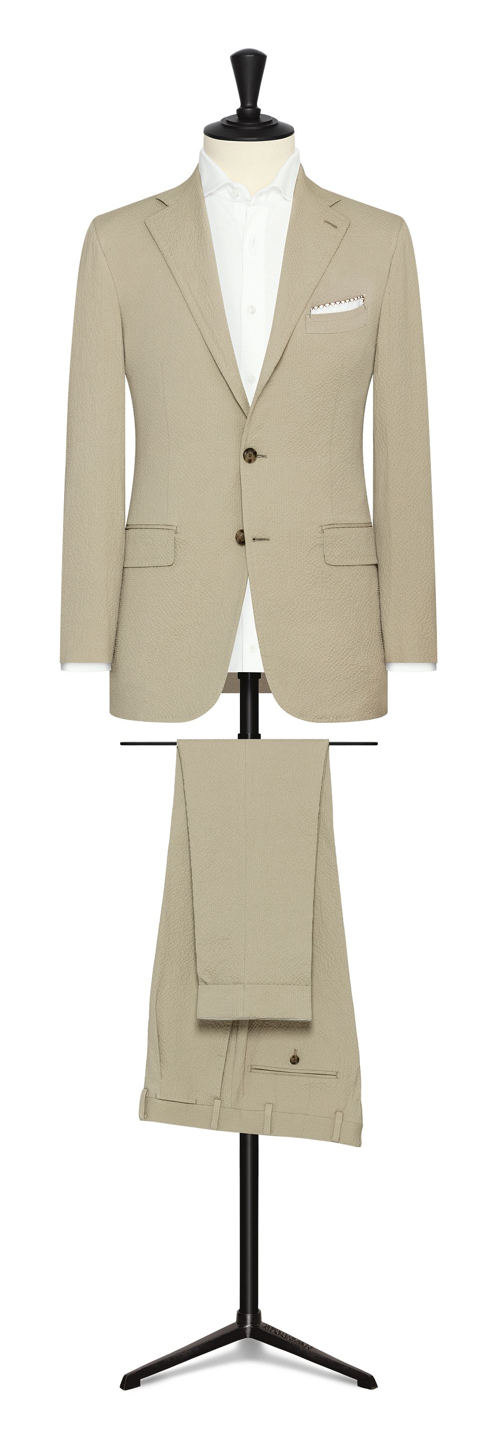 Beige Stretch Baumwolle Seersucker Anzug ab € 699.-