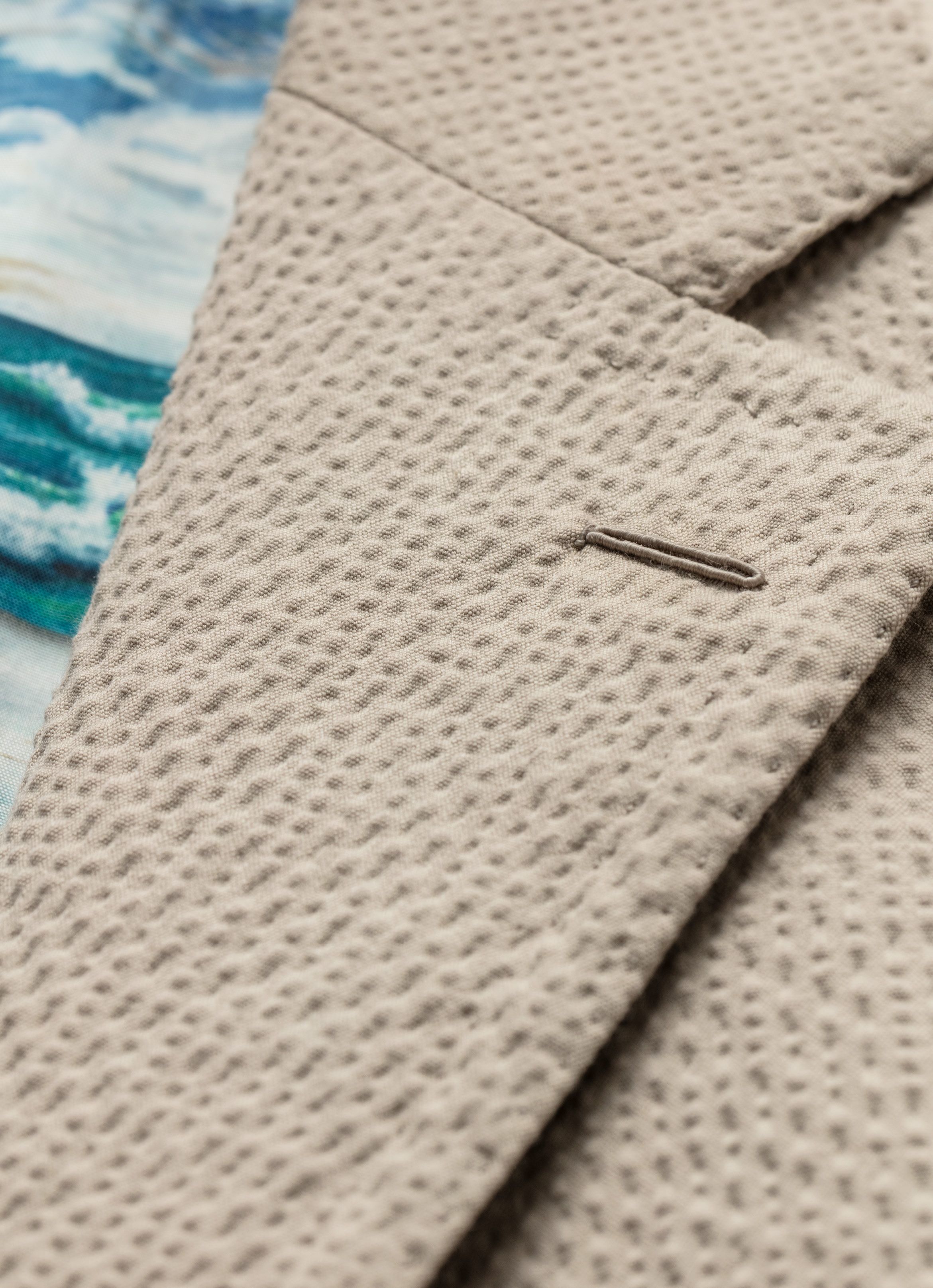 Dieser raffinierte Seersucker von Subalpino wird Sie in dieser Saison zum Erfolg führen. In Italien gewebt, aus einer natürlichen Baumwolle mit einem Hauch von Stretch, um eine komfortable, entspannte Passform zu schaffen. Das helle Beige ist perfekt für warme Tage und stückgefärbt für einheitliche Farbe und Qualität. Das Ergebnis: ein leichter und luftiger Anzug, der Form und Mode kombiniert.