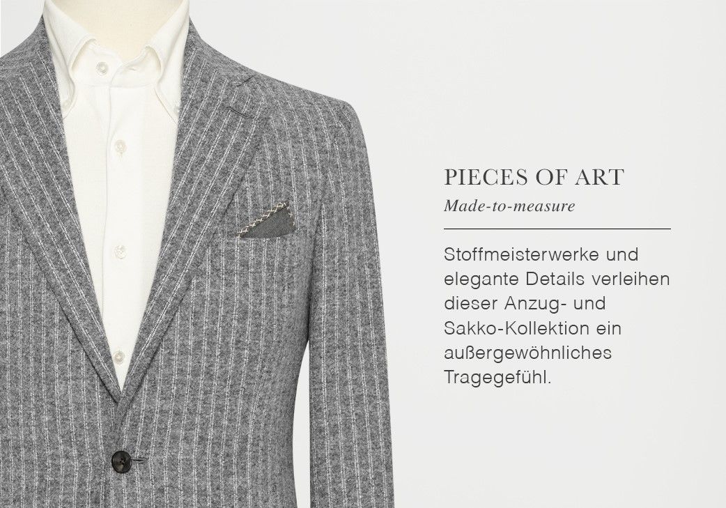 Kleider machen Leute. Mit dieser markelosen Kollektion aus erlesenen Anzügen und Sakkos aus den feinsten Stoffen erwartet Sie eine sorgfälltig, gefertigte Garderobe. Alpaka-Jundtierwolle, Baumwollmischgewebe, edle Wolle, Seide und/oder Mischgewebe aus Leinen halten in der kommenden Saison nicht nur warm, sondern sorgen auch für einen verdammt guten Look.