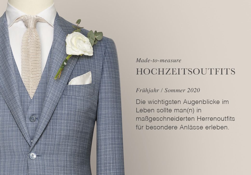 Ob als Bräutigam, Trauzeuge oder Gast: Diese Hochzeitsoutfits begleiten Dich perfekt gestylt durch diesen besonderen Tag. In der Kollektion für diese Jahreszeit gibt es fünf taufrische Stoffe: vier ausgefallene Wollgewebe und eine Stretchwolle gesellen sich zu unseren 18 Woll-Mohair-Mischgeweben und acht Seiden-Woll-Mischungen « Zurück