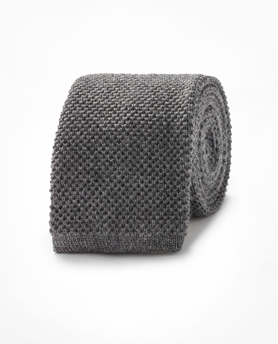Für Krawatten, die ganz klassisch sind, ohne langweilig zu werden, kombinieren diese gestrickten Optionen in einer kühlen Winterfarbe subtile Textur mit einem glatten Finish. Diese Textur wird durch die gestrickte Wolle oder Leinenfaser ermöglicht, deren Garne (im Gegensatz zu einer Webart) geschlungen sind, um einen dickeren, taktileren Griff mit einer elastischeren Konsistenz zu erhalten. Wird verwendet, um unbestückte Krawatten in einer Bobtail-Marke herzustellen, besonders ideal für Gelegenheits-Events.